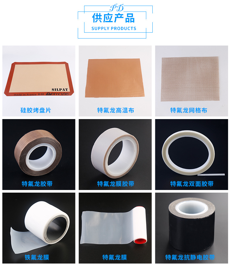 公司專注于PTFE  四氟布  鐵氟龍布  鐵氟龍膠帶  特氟龍網格帶  特氟龍膠帶  特氟龍高溫布  特氟龍膜膠帶  特氟龍膜  泰州特氟龍膜  泰州硅膠布  泰州PTFE  系列產品、以及 硅膠布等系列產品的研發、生產、銷售,產品遠銷國內外。歡迎來電咨詢。